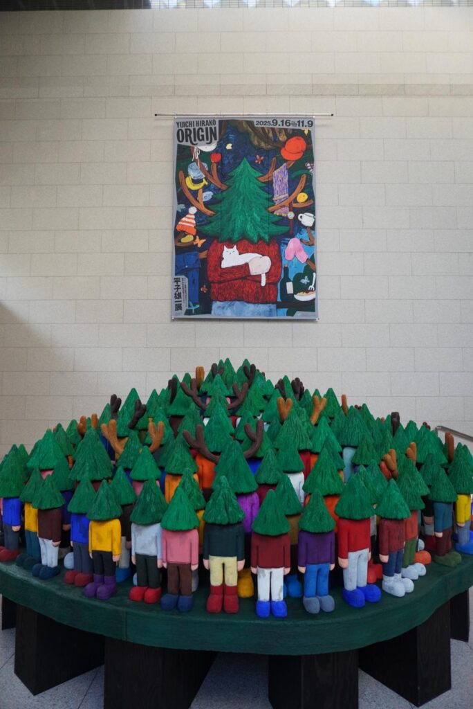 His expansive solo exhibition, ORIGIN, at the Okayama Prefectural Museum of Art marks his first large-scale solo presentation in his home prefecture. Inviting visitors into a surreal, almost Alice in Wonderland-like realm, the exhibition transforms not only the museum’s indoor galleries but also its courtyard and plaza. From salon-style hangings of numerous paintings and sculptures along undulating plywood surfaces to a monumental four-part canvas, Hirako’s works distort perception and spark curiosity.
